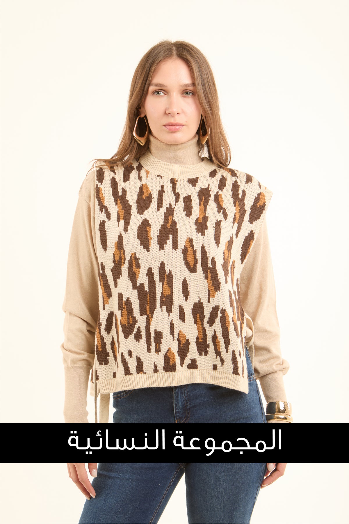 فيست ناعم برقبة دائرية بنقشة الفهد