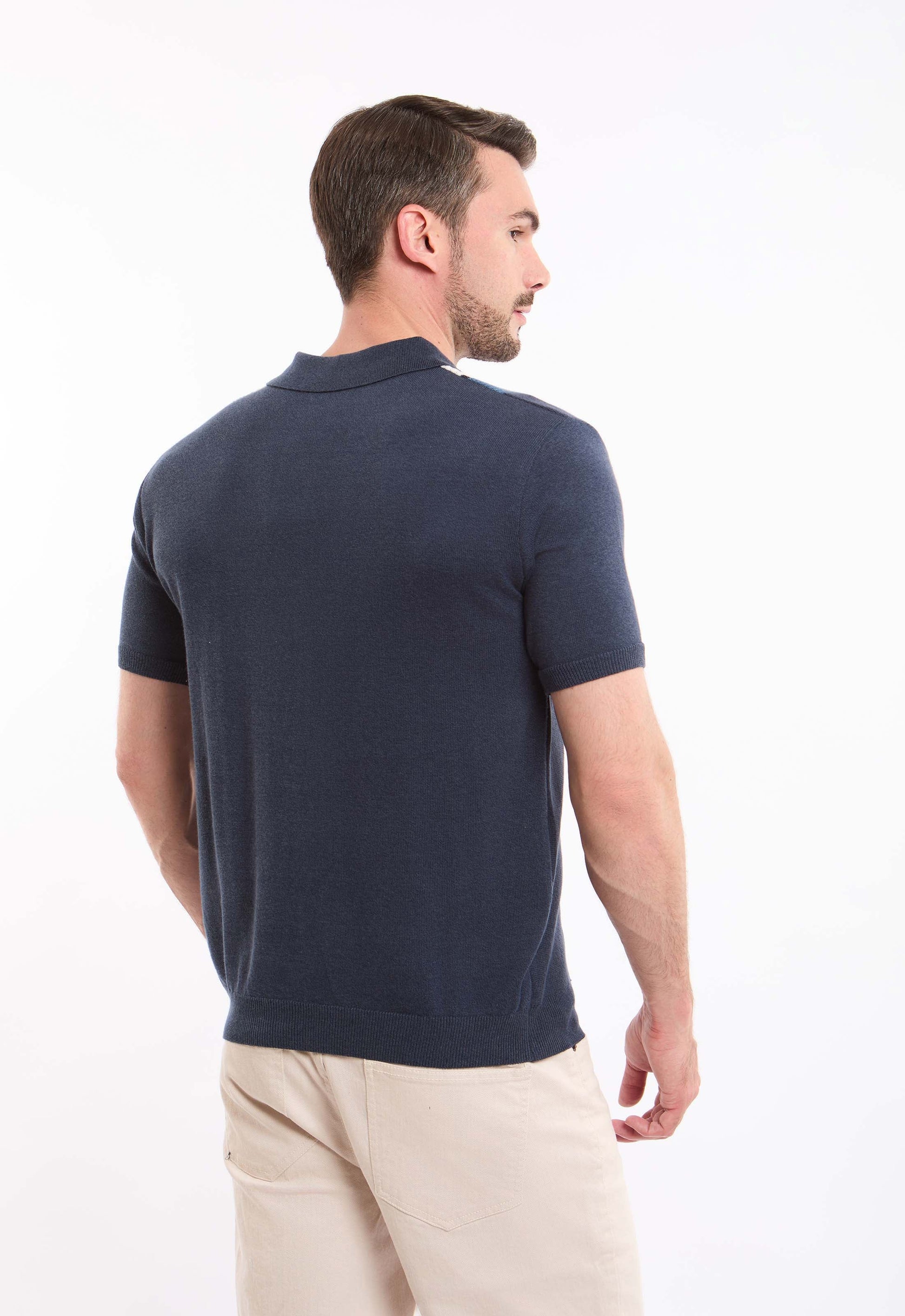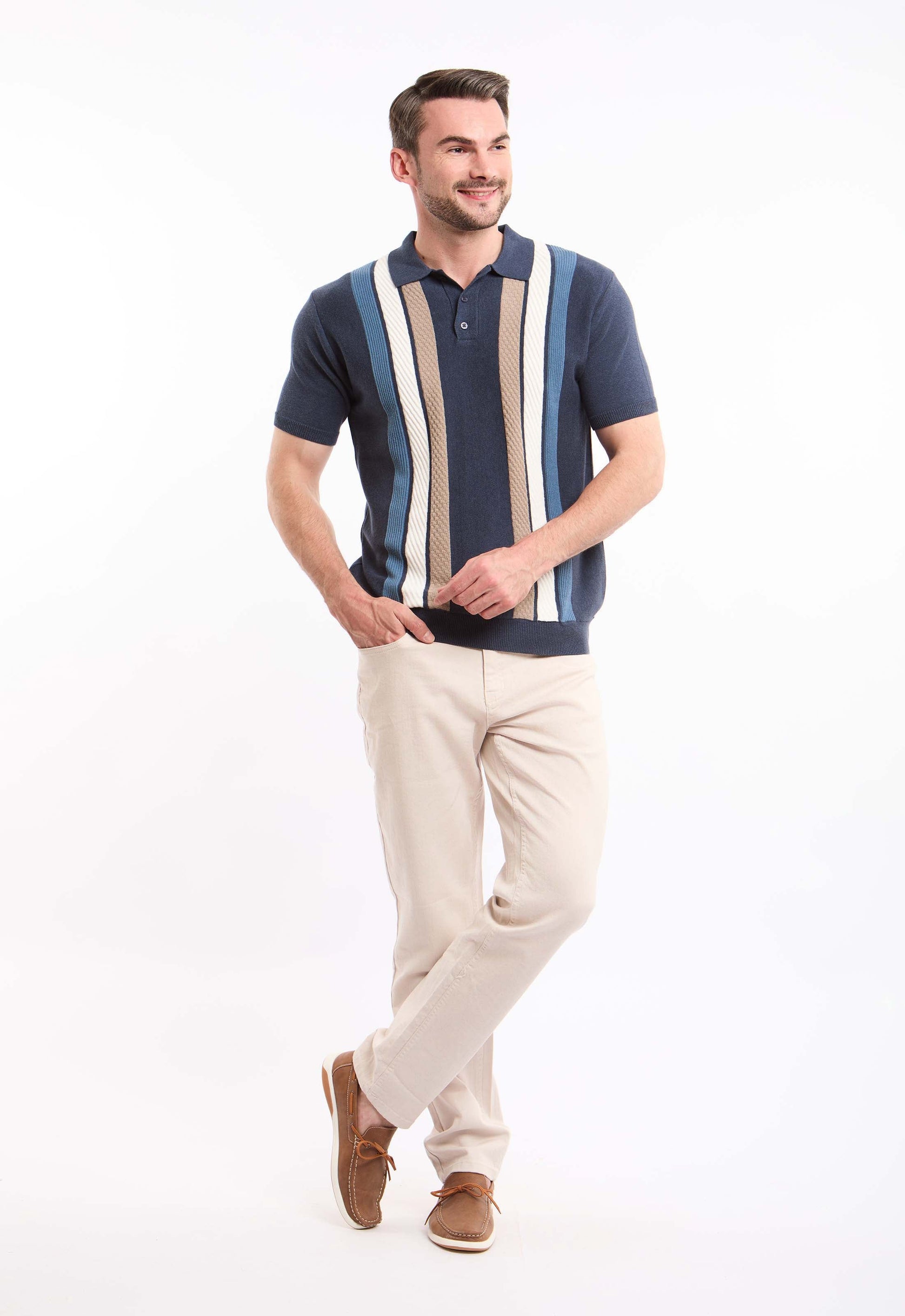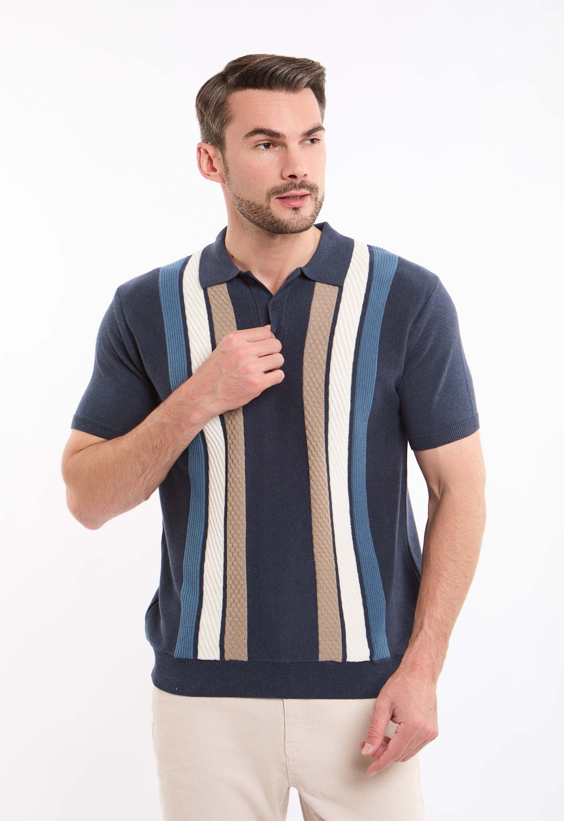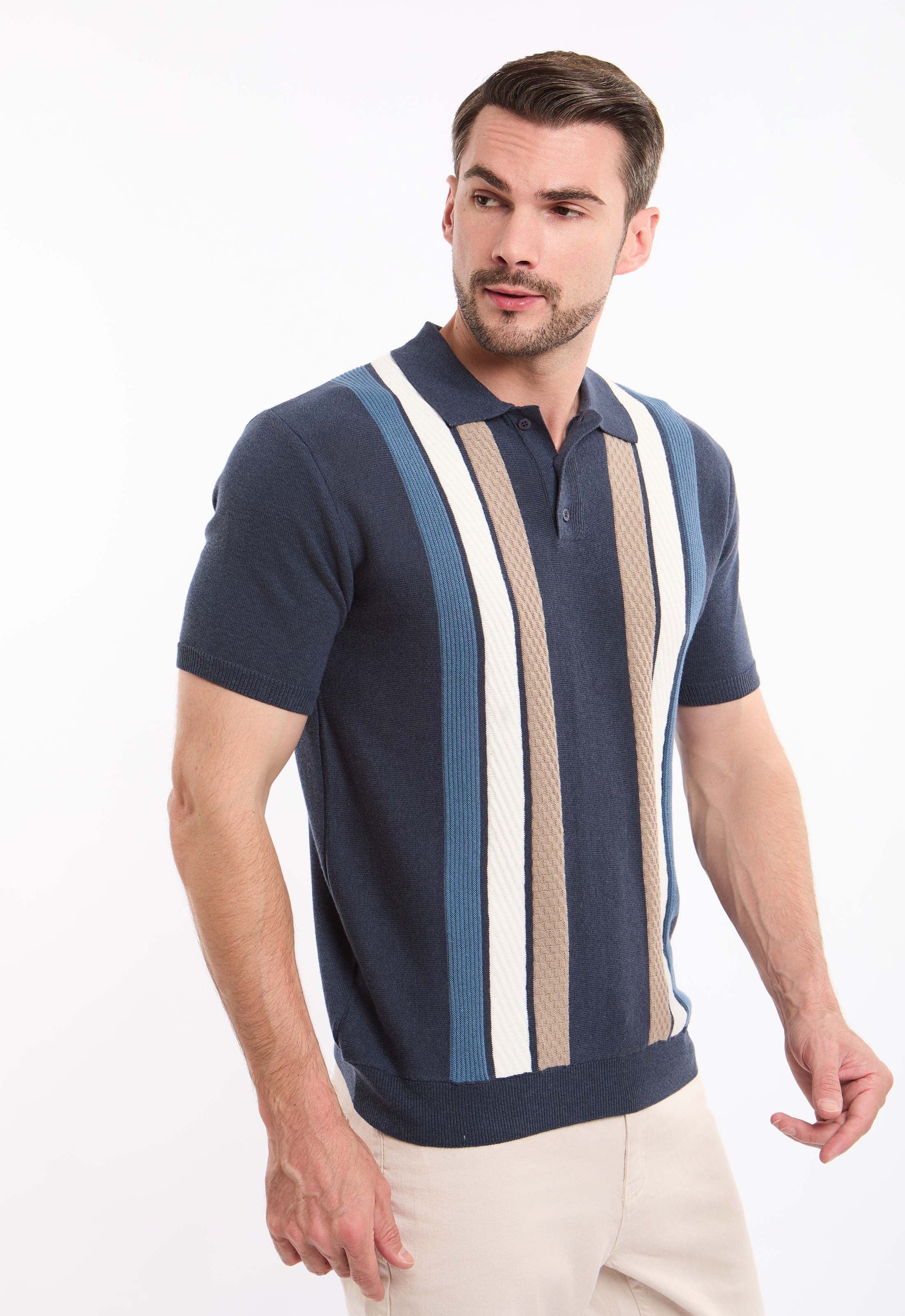 تيشيرت بولو مخطط بأكمام قصيرة وأزرار