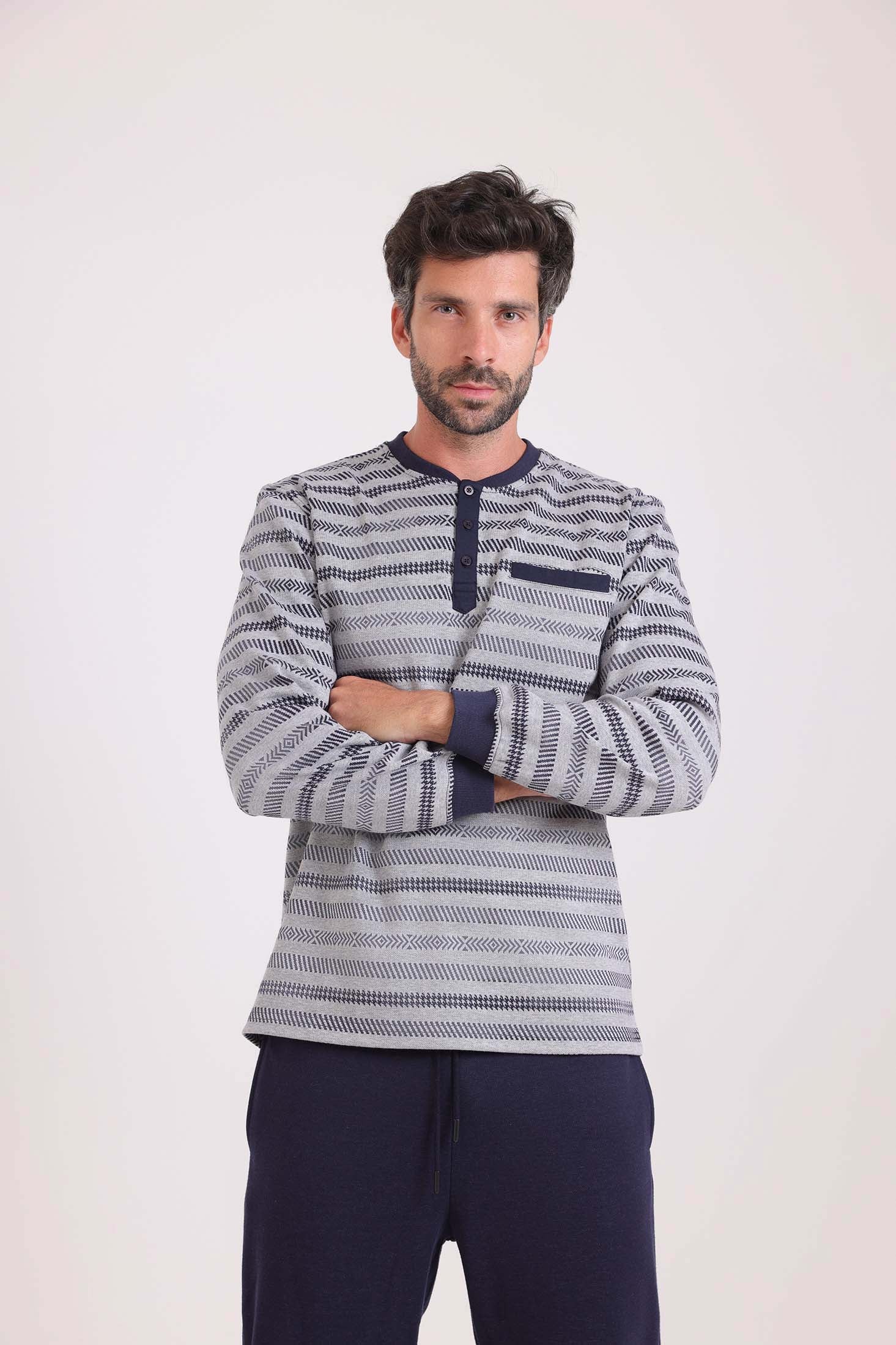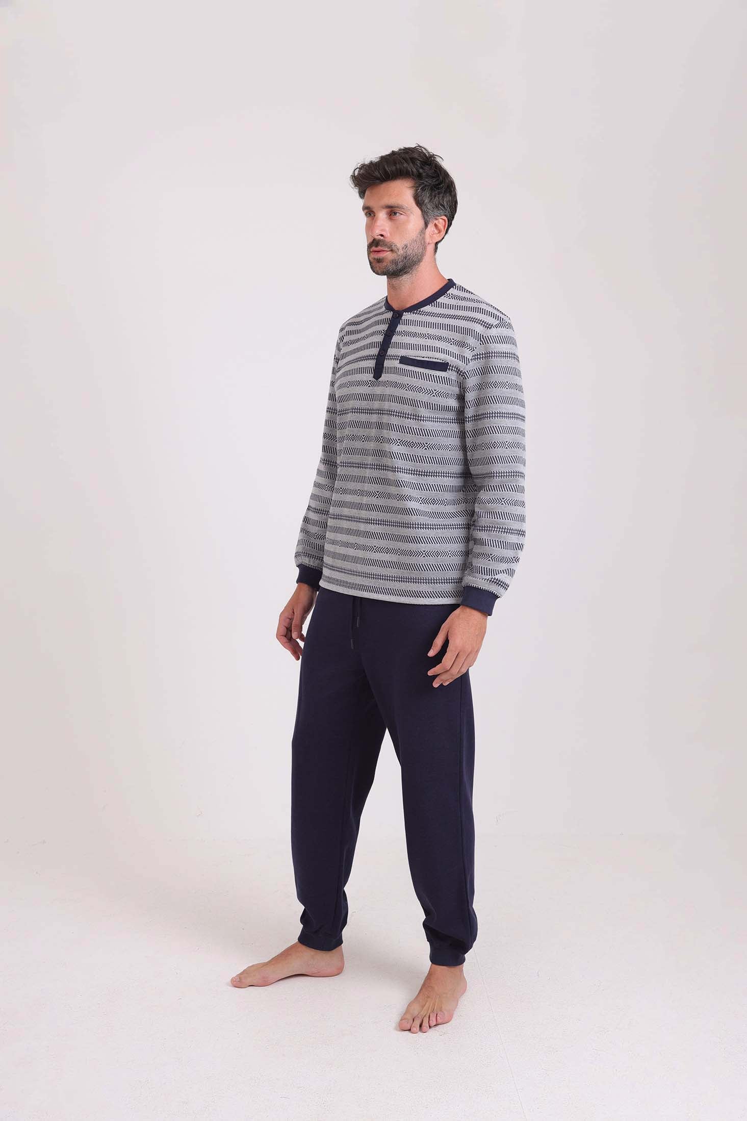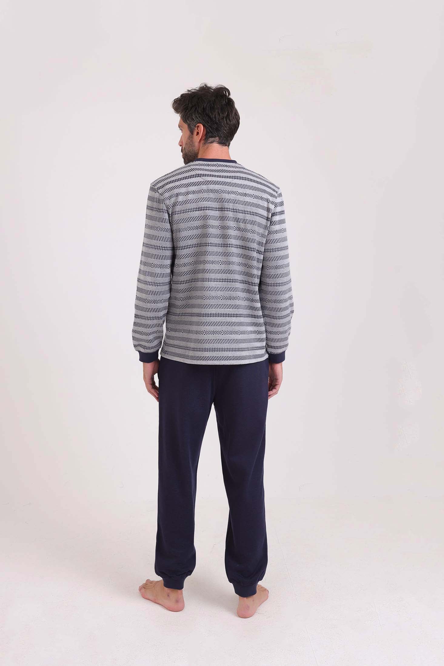 طقم بيجامة شتوي توب مخطط & بنطلون سادة
