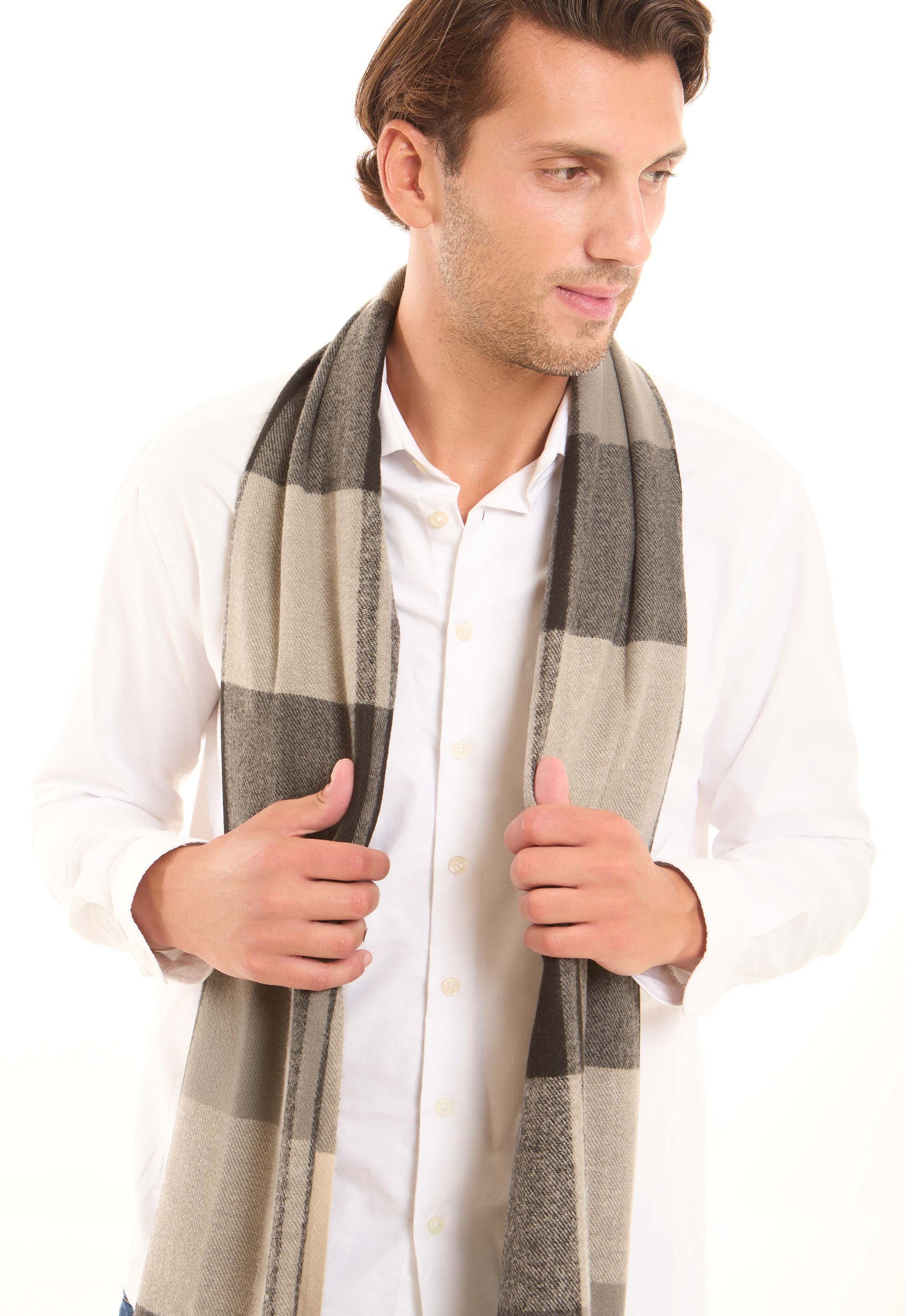 وشاح شتوي مخططي مع شراريب.