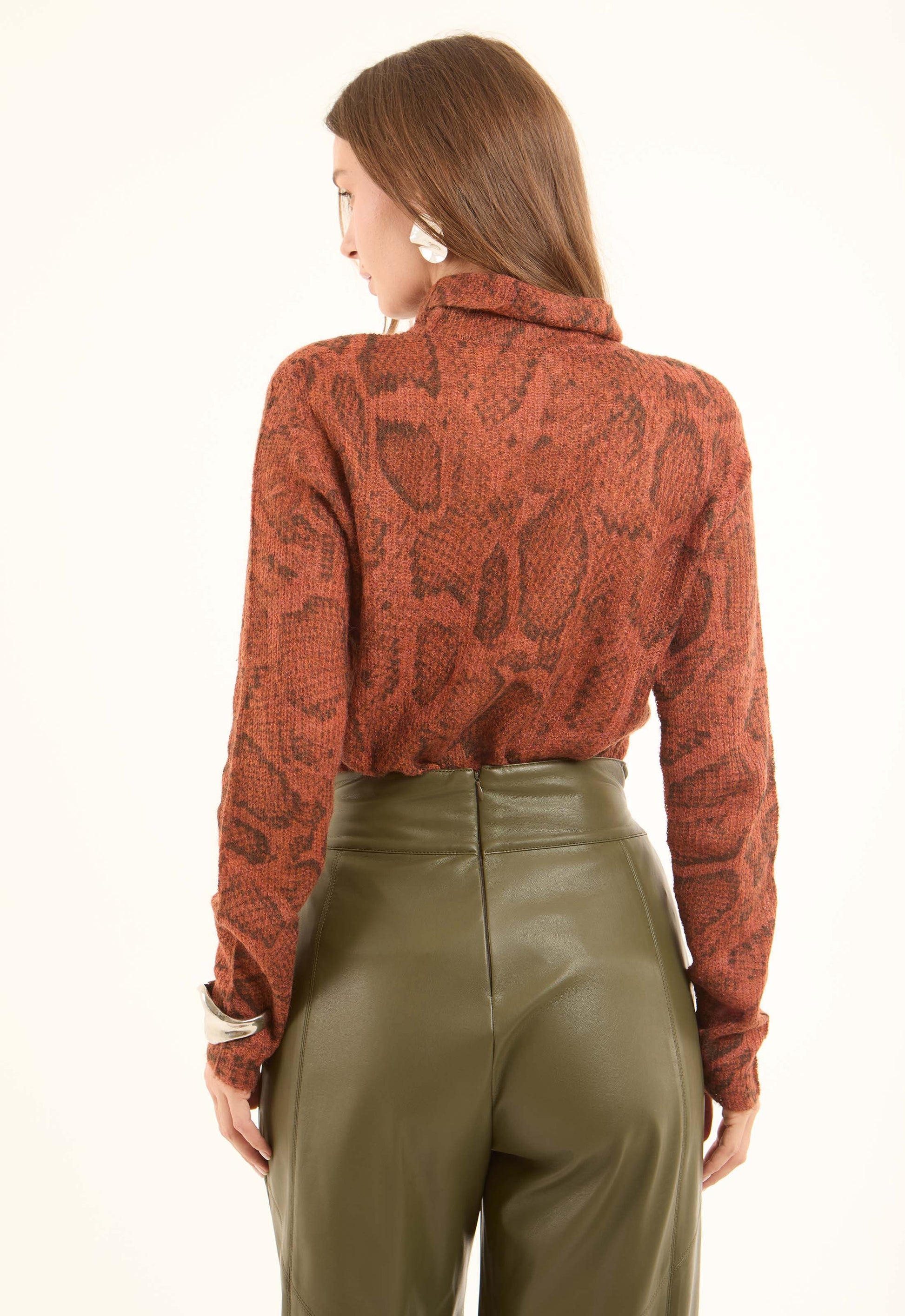 بلوفر بنقشة الثعبان بأكمام طويلة وقصة عادية