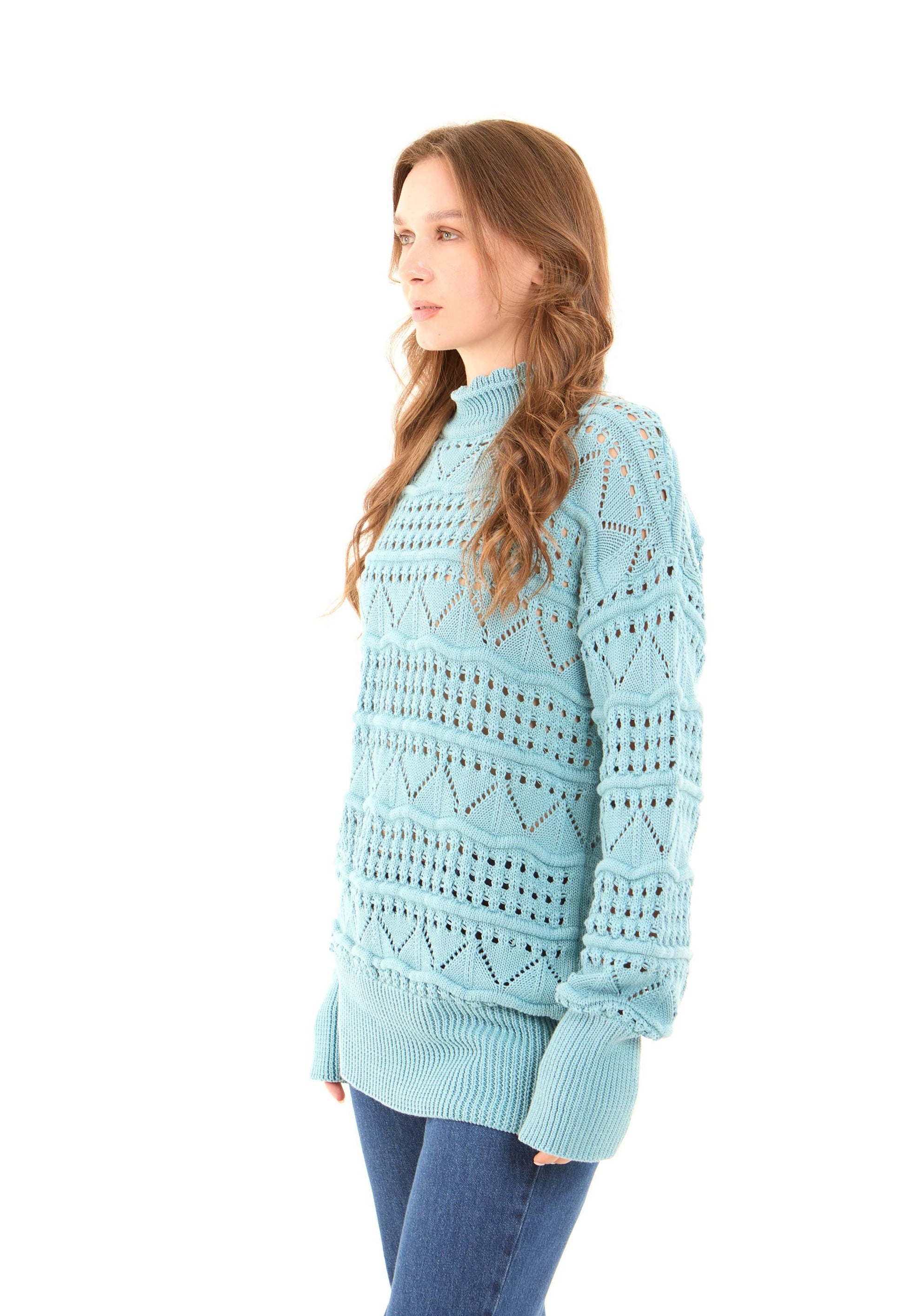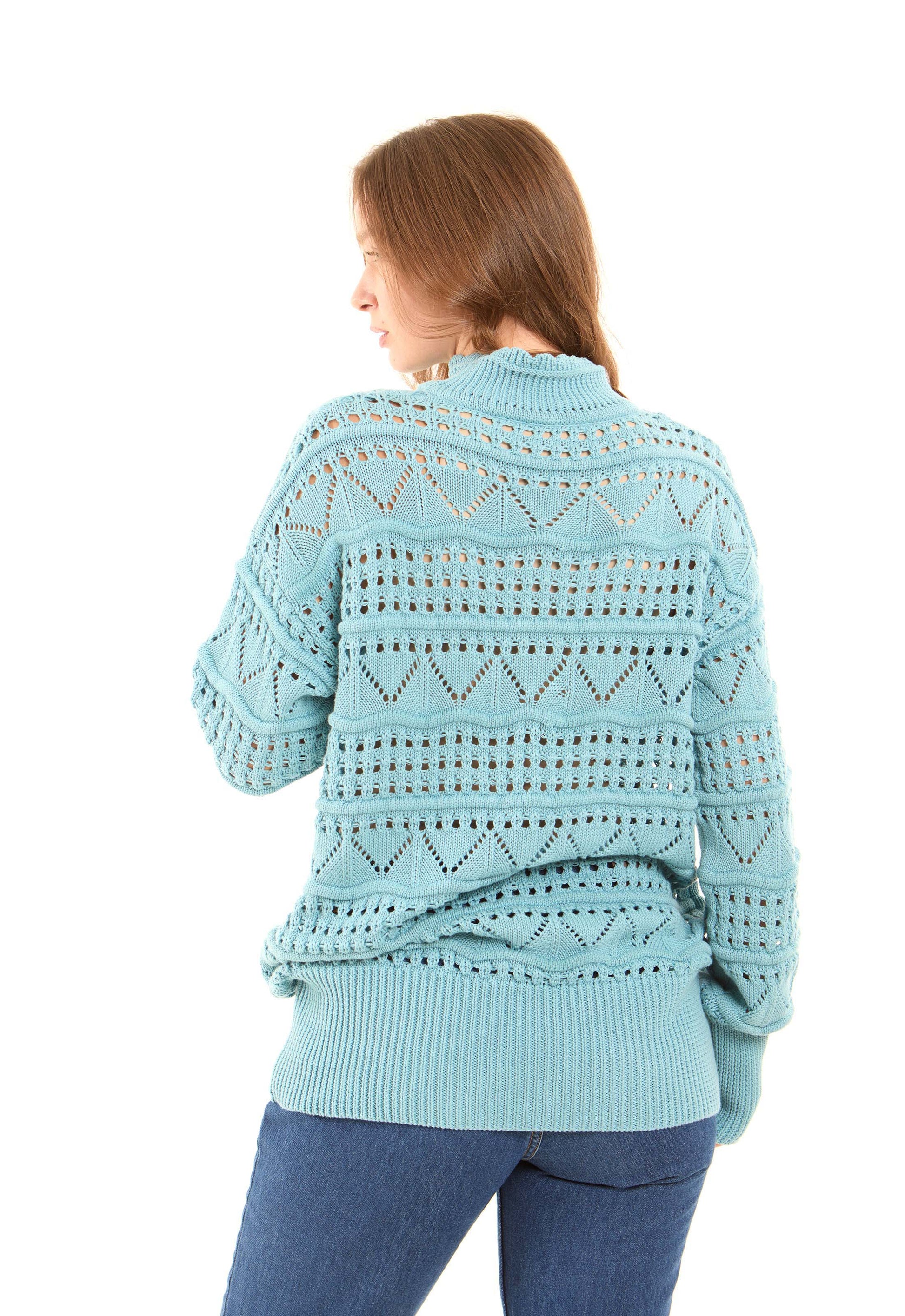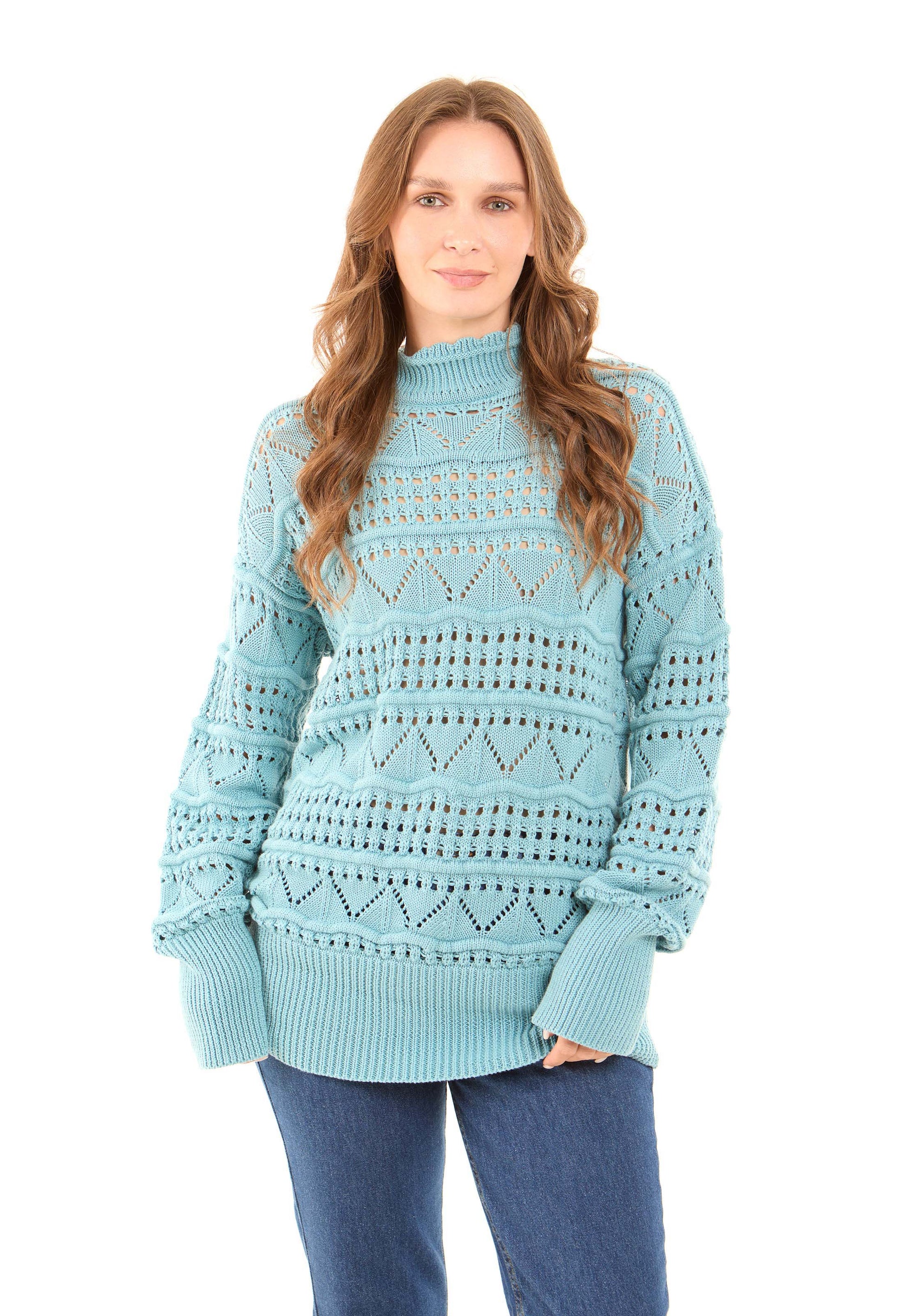 بلوفر محبوك مخرم ومنقوش برقبة عالية
