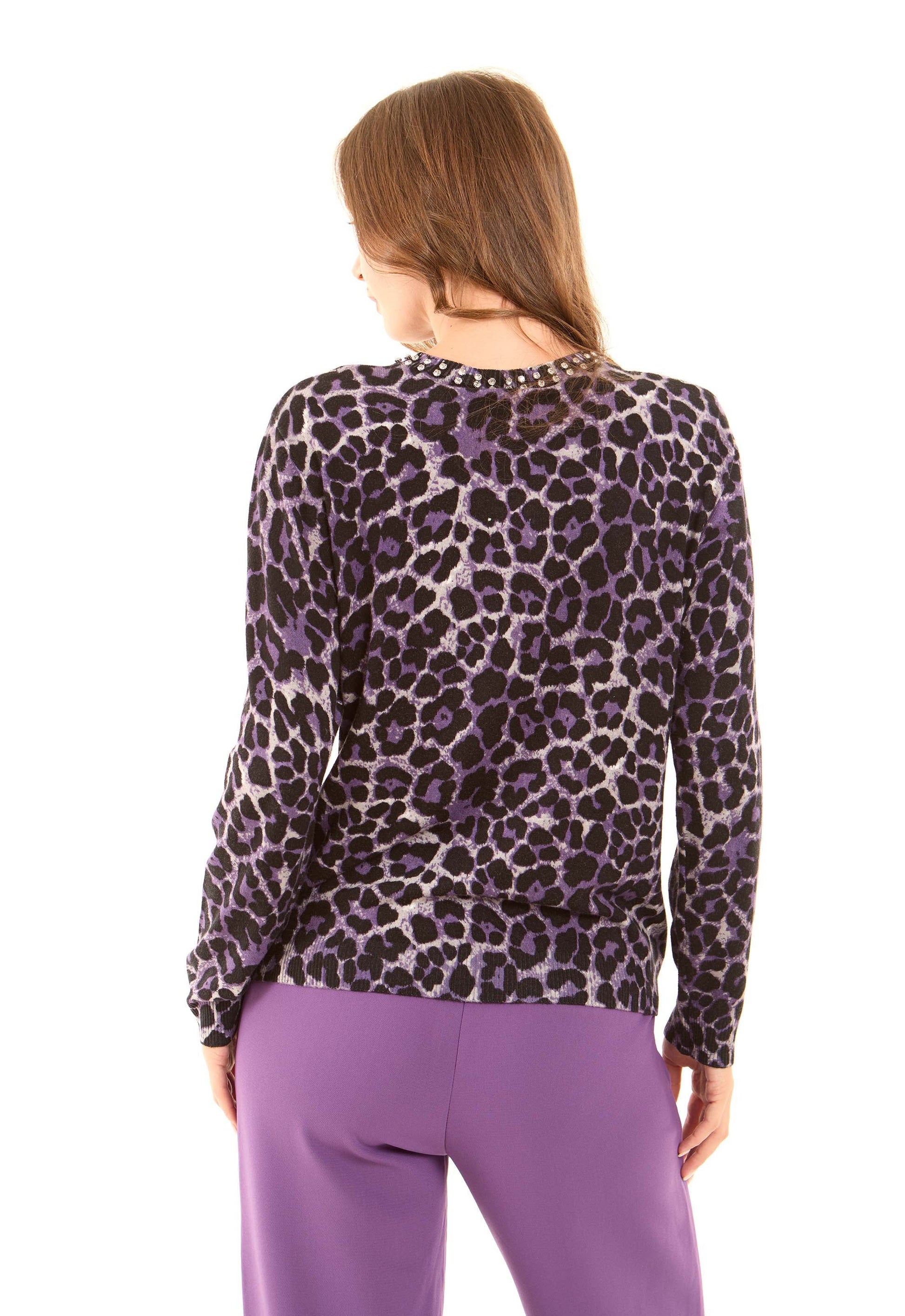 بلوفر سهل الارتداء بنقشة الفهد برقبة دائرية مزينة بمسامير معدن