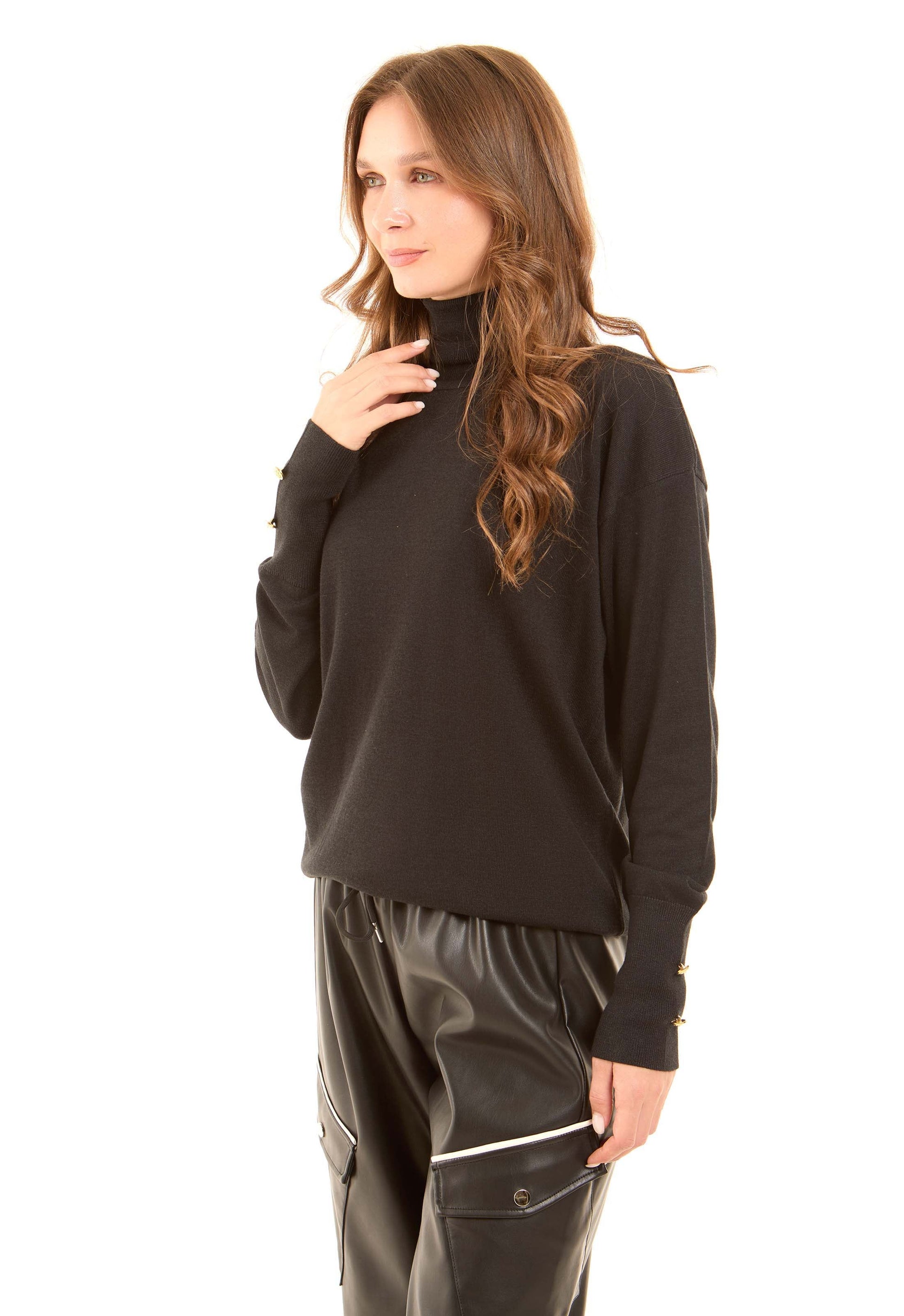 بلوفر سادة بأكمام طويلة مزينة بأزرار