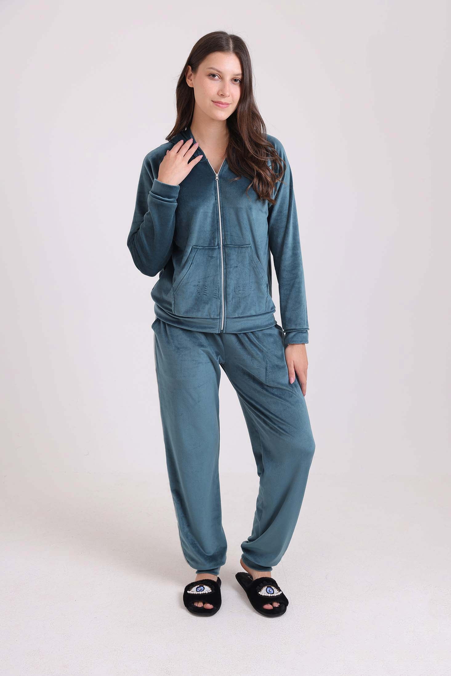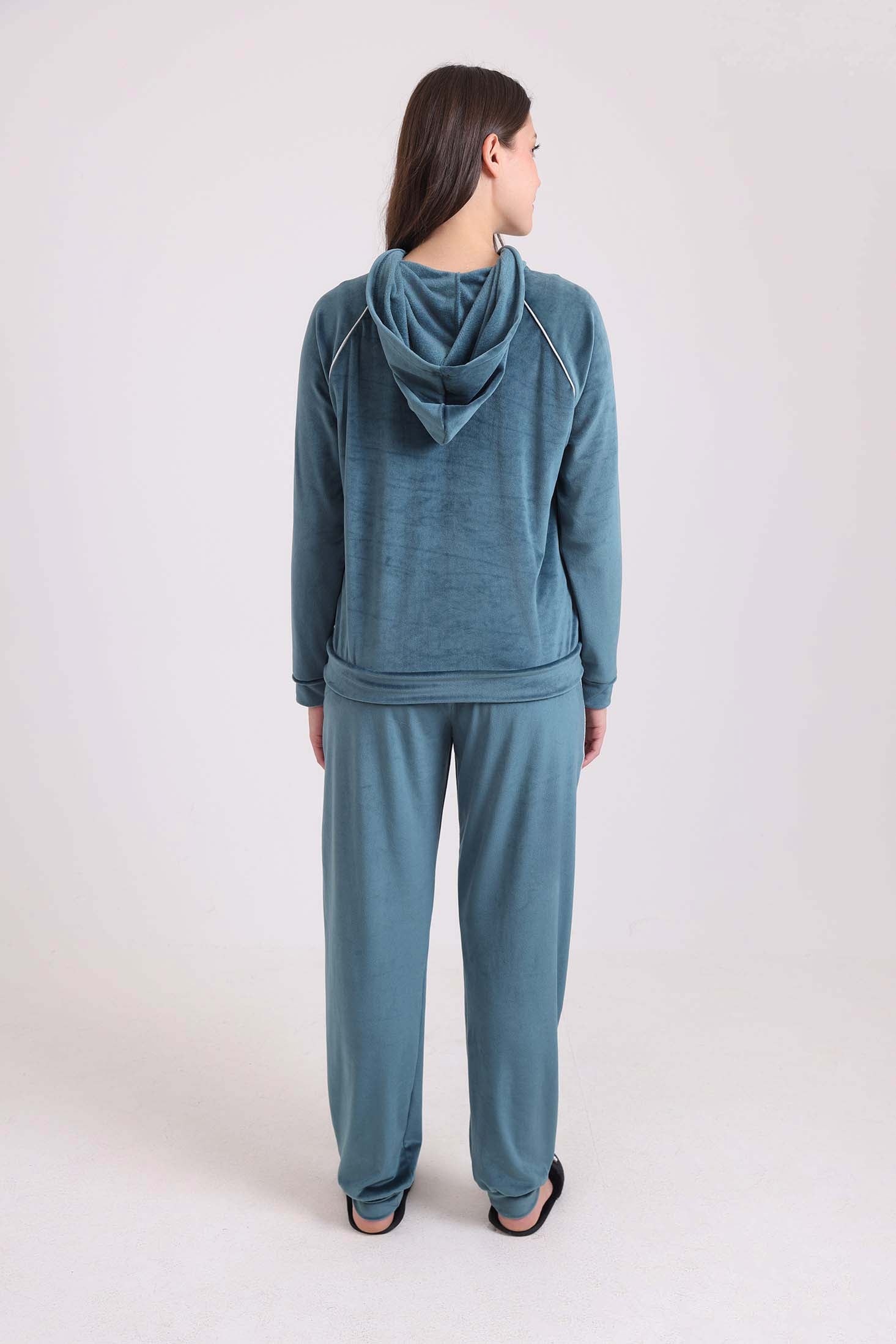 طقم بيجامة هودي بأكمام طويلة وستوستة & بنطلون