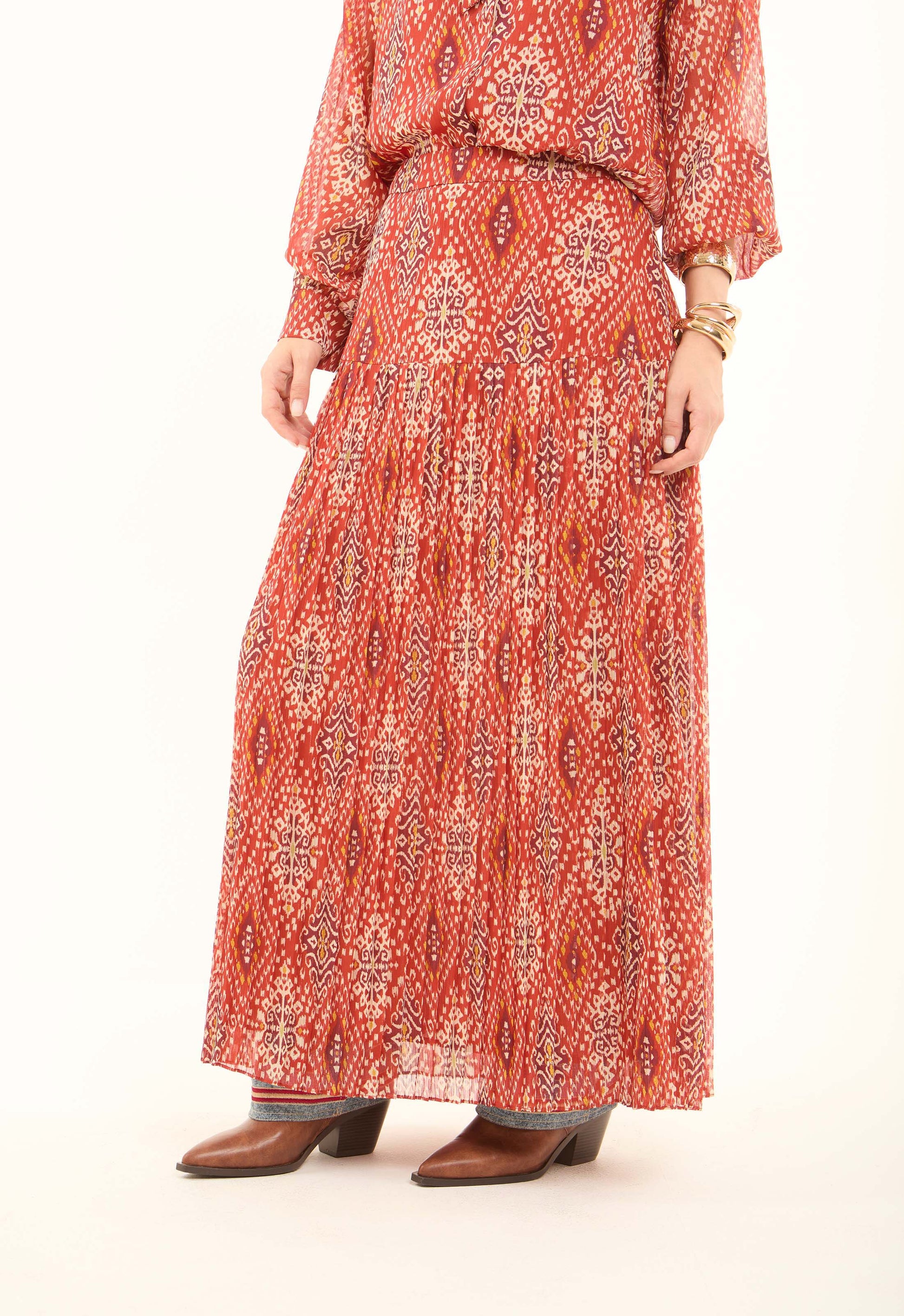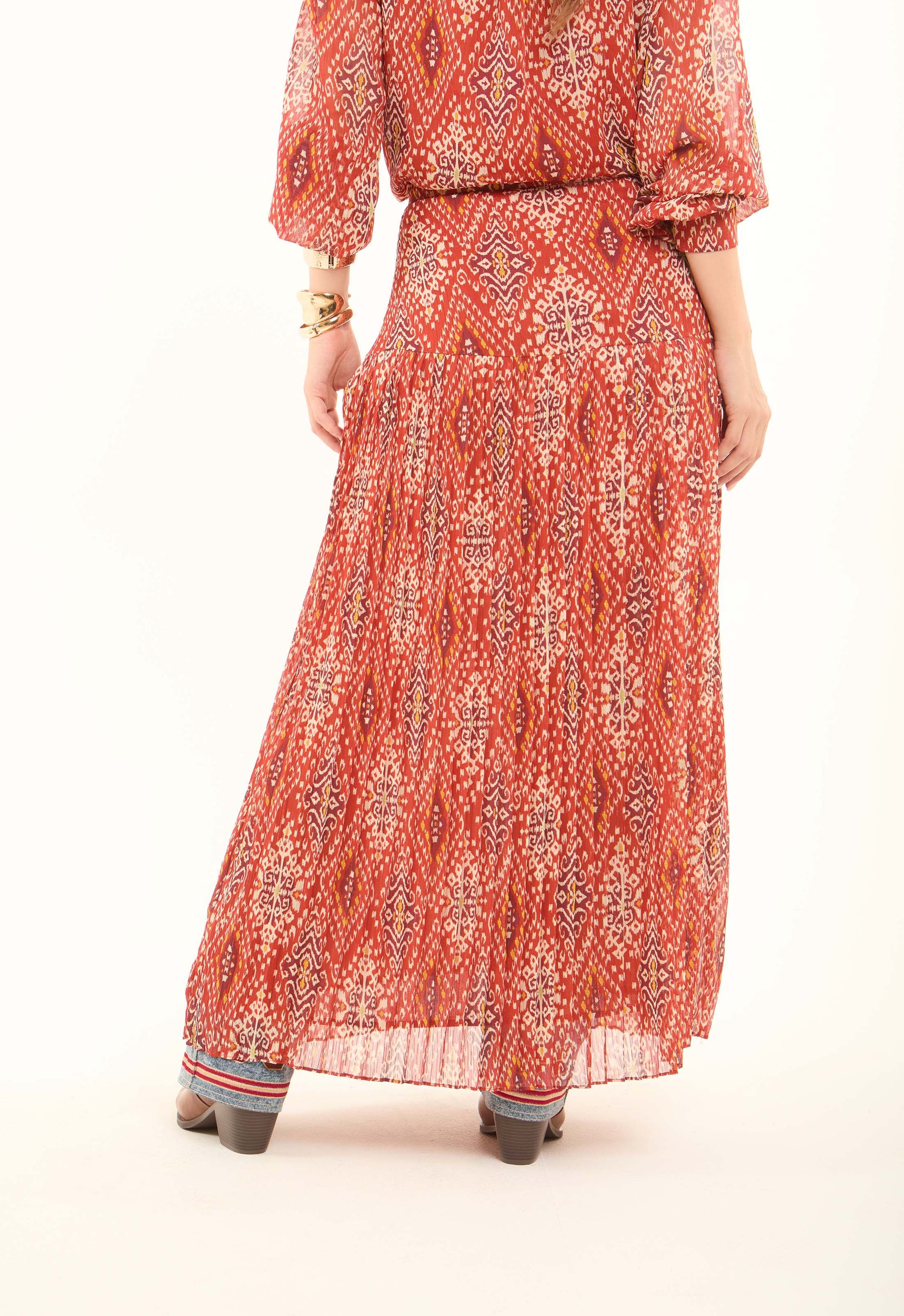 جيبة ماكسي شيفون منقوشة وبسوستة