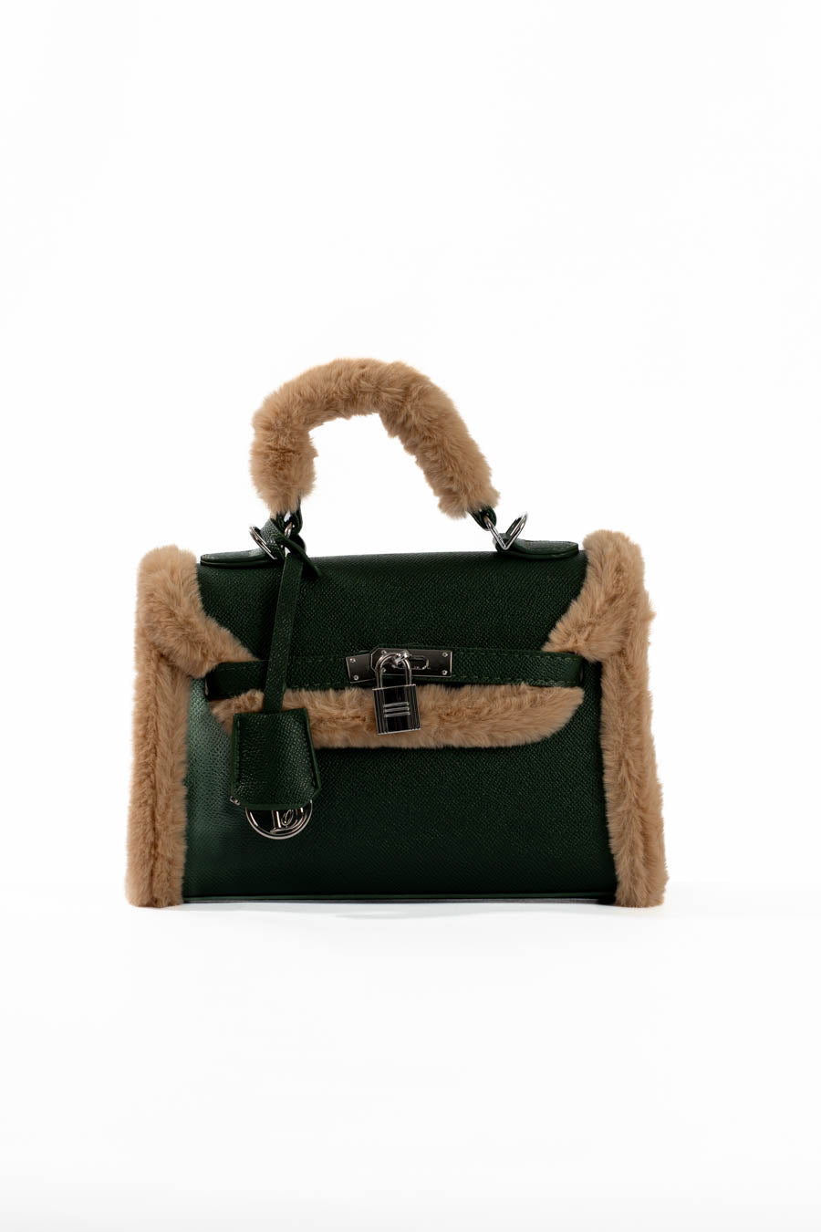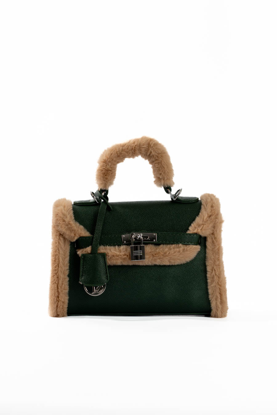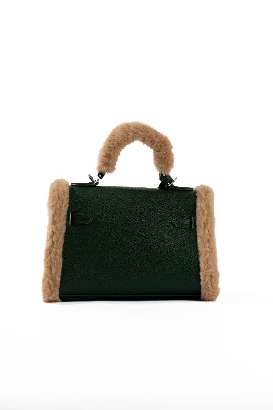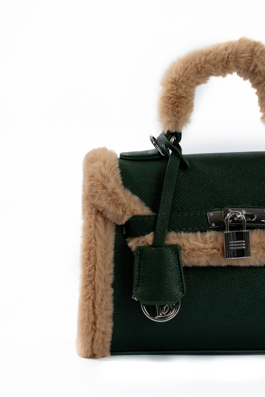 حقيبة مقبض علوي مرتفعة بتشطيب الفرو