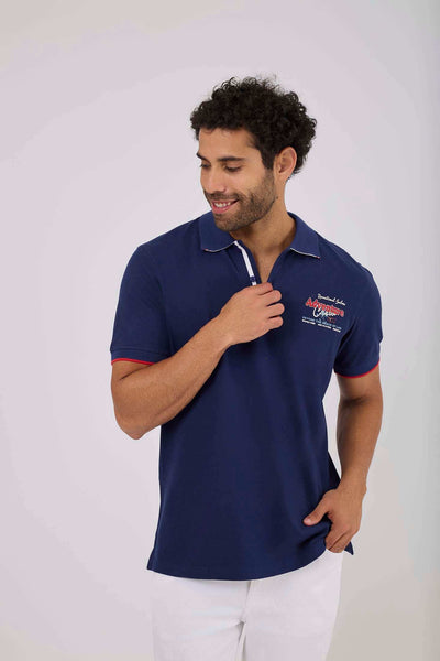 Men Regular Fit Polo - Dark Navy: Crafted from 100% Cotton, this piece combines quality and style. From Dalydress, it's perfect for any occasion and a timeless wardrobe addition.
