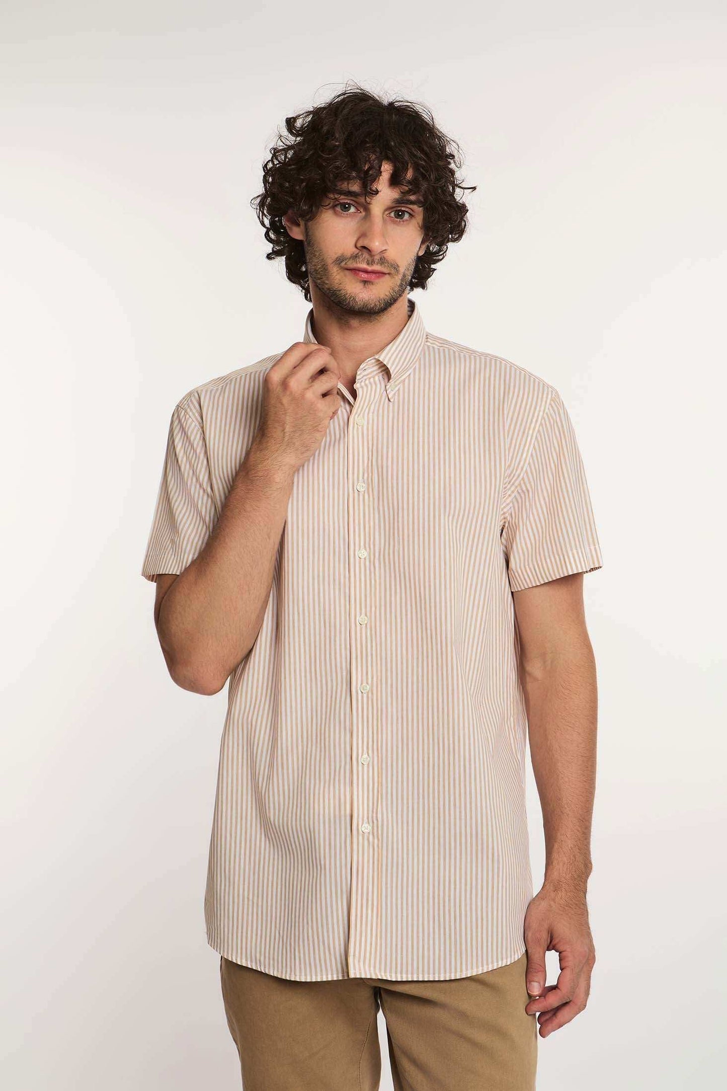 Men Regular Fit Shirt - Sand: Crafted from 100% Cotton, this piece combines quality and style. From Dalydress, it's perfect for any occasion and a timeless wardrobe addition.