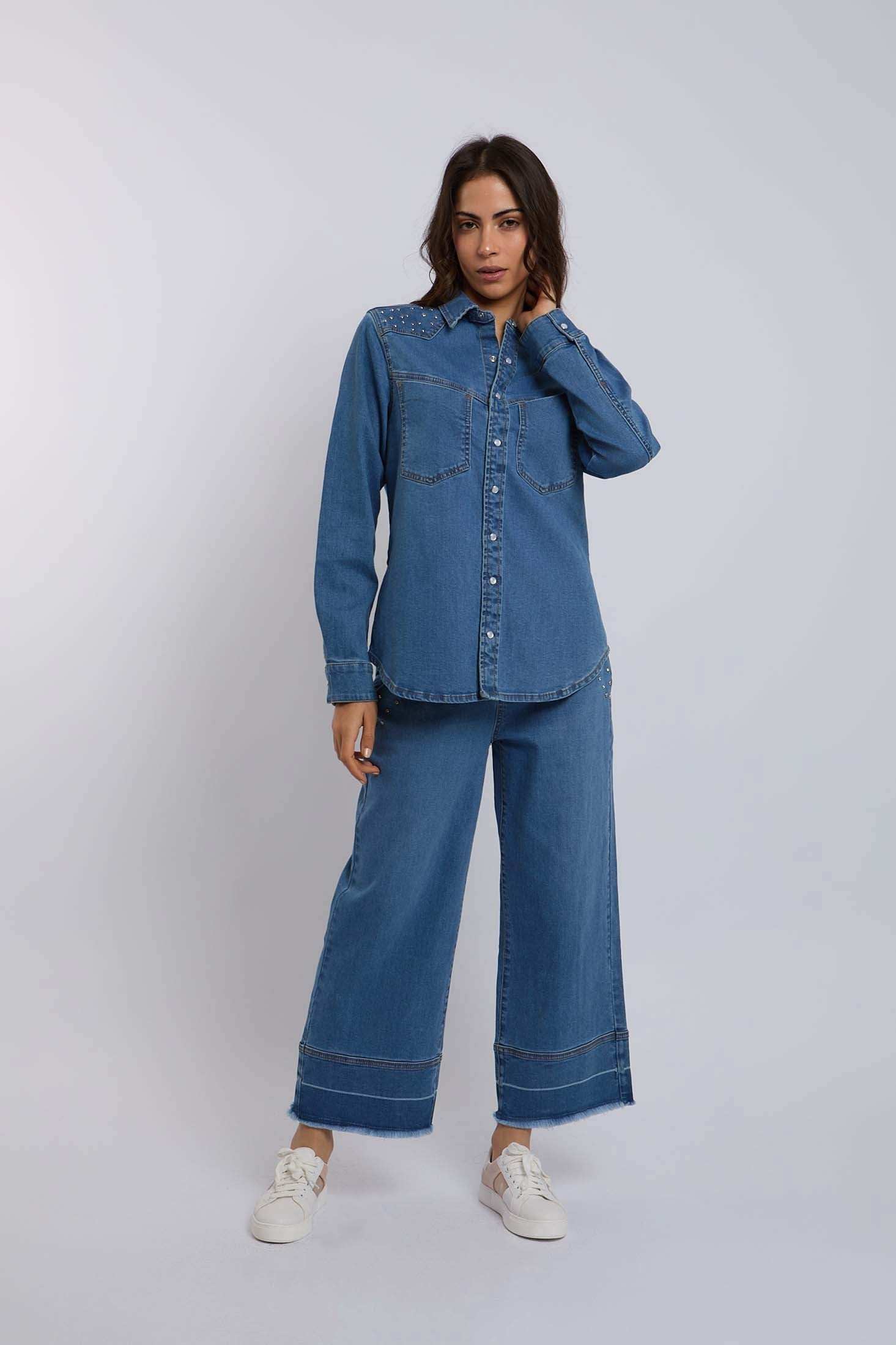 Women Regular Fit Blouse - Medium Indigo: Crafted from 99% Cotton 1% Spandex, this piece combines quality and style. From Dalydress, it's perfect for any occasion and a timeless wardrobe addition.