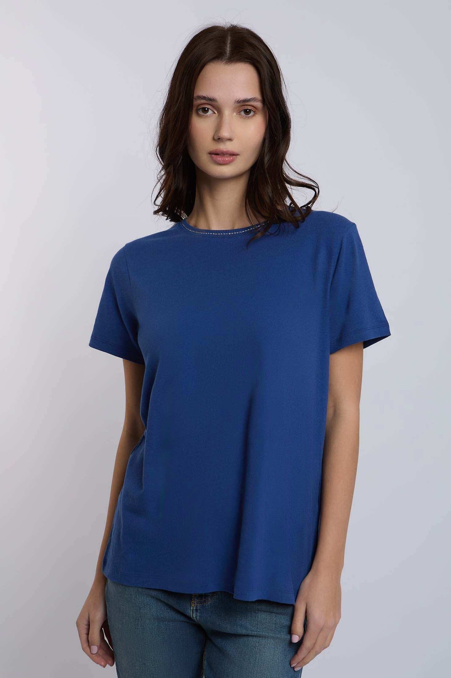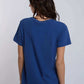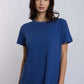 Women Regular Fit T-Shirt - Blue: Crafted from 55% Cotton 45% Linen, this piece combines quality and style. From Dalydress, it's perfect for any occasion and a timeless wardrobe addition.