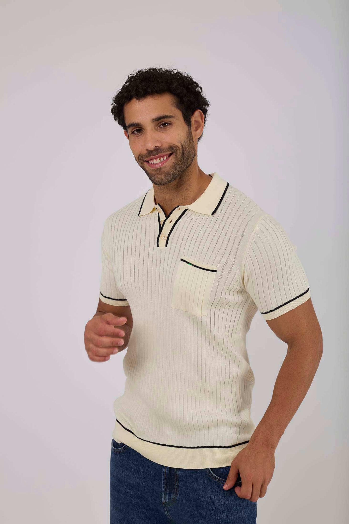 Men Regular Fit Polo - Off White: Crafted from 50% Cotton 50% Modal, this piece combines quality and style. From Dare, it's perfect for any occasion and a timeless wardrobe addition.