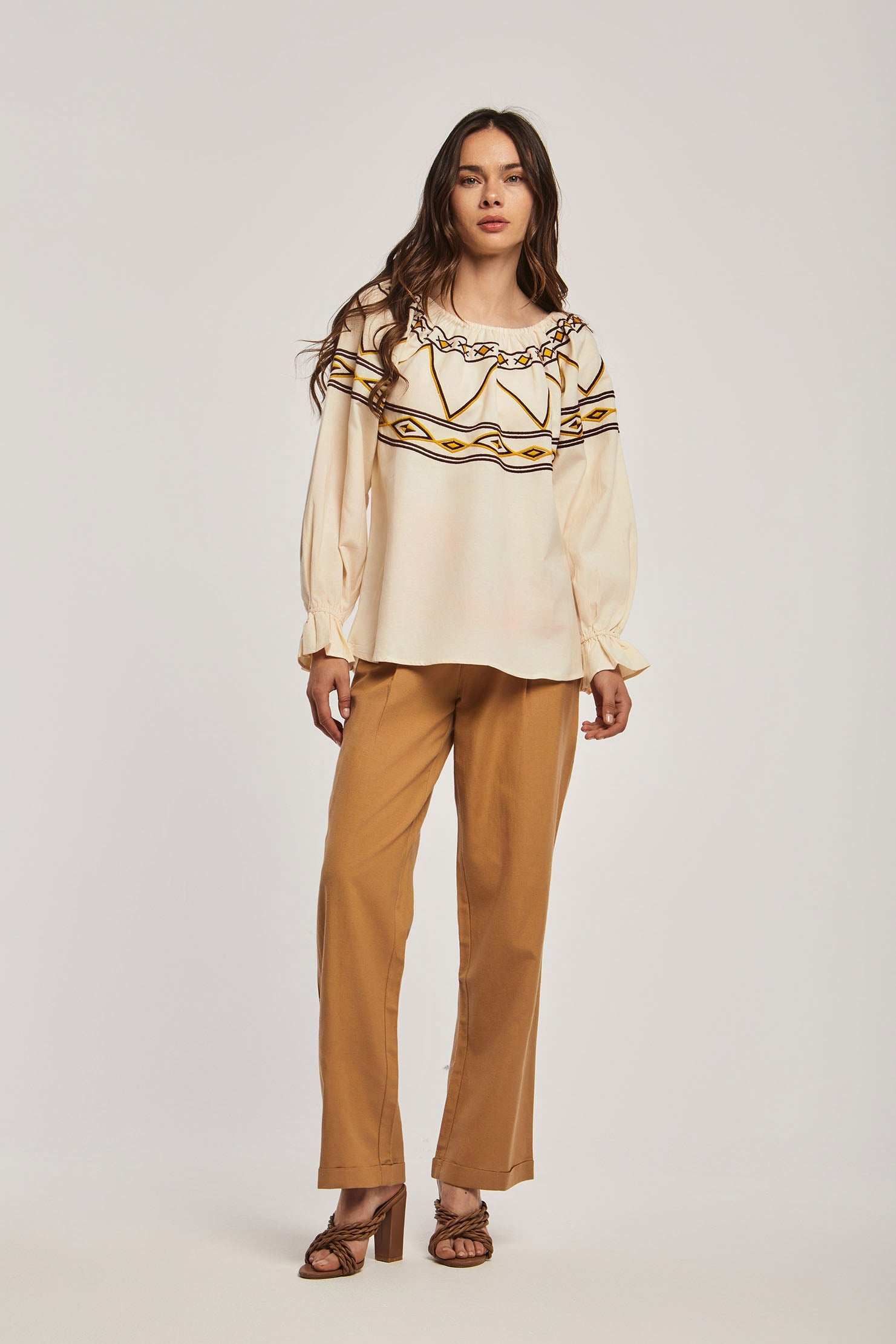 Women Regular Fit Blouse - Ecru: Crafted from 77% Viscose 23% Linen, this piece combines quality and style. From Dare, it's perfect for any occasion and a timeless wardrobe addition.