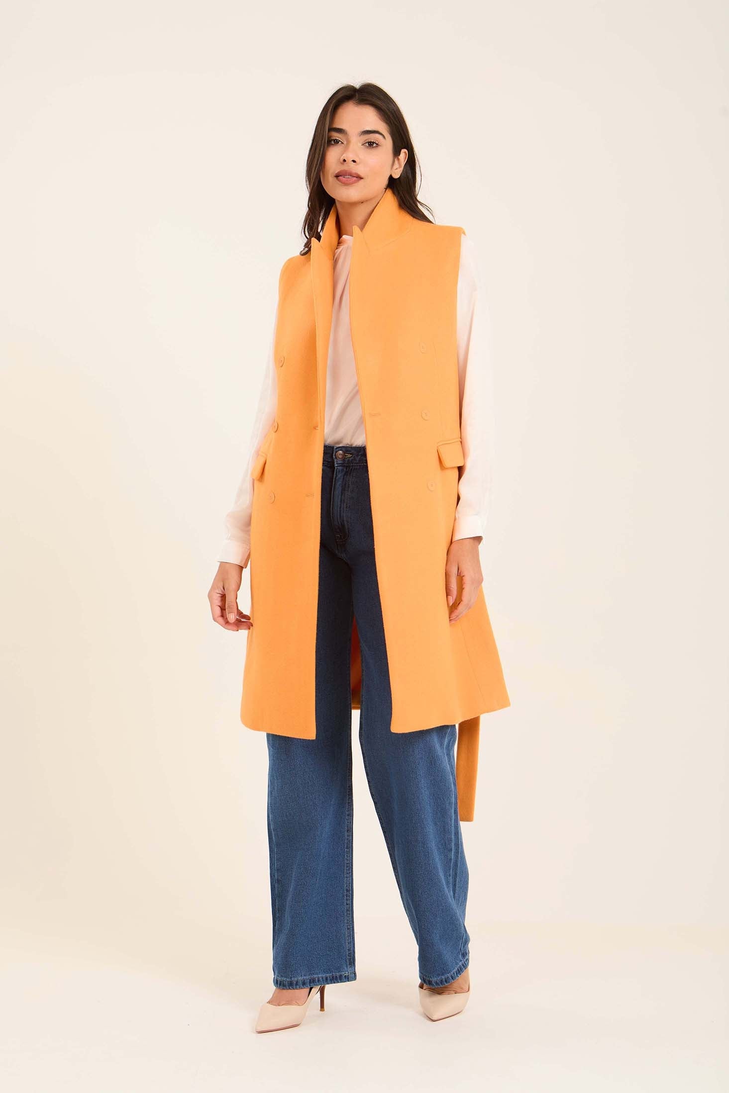 Introducing the Women Long Double Breasted Vest - Orange from Dalydress. Made with quality and style in mind, this vest is a must-have for any fashion-forward woman. The double-breasted design adds a touch of elegance, while the orange color brings a vibrant pop to any outfit. Get yours today and elevate your wardrobe.