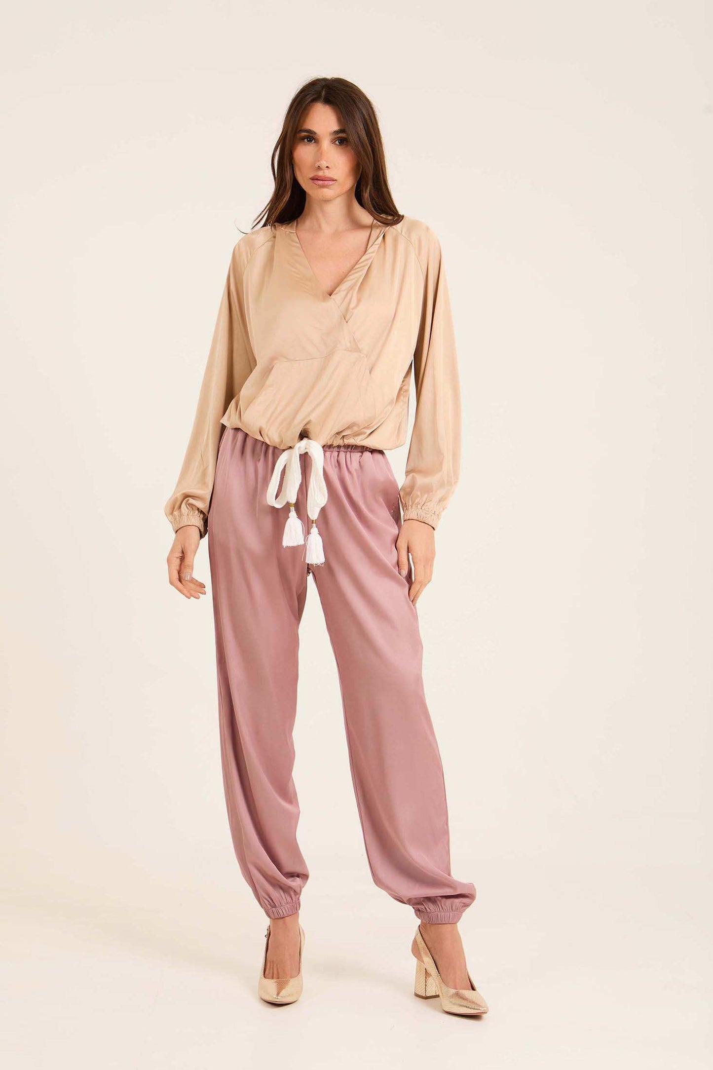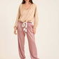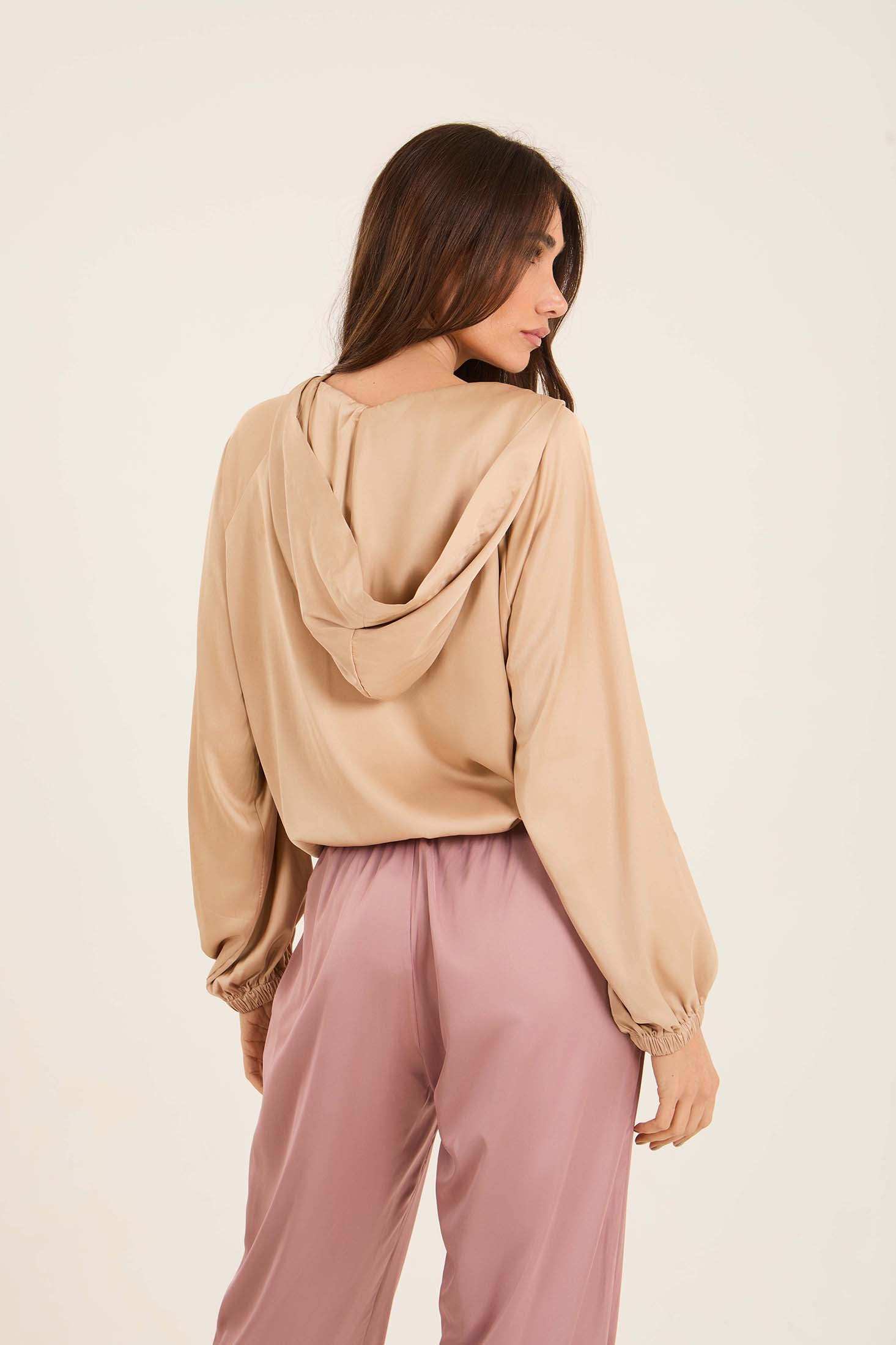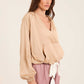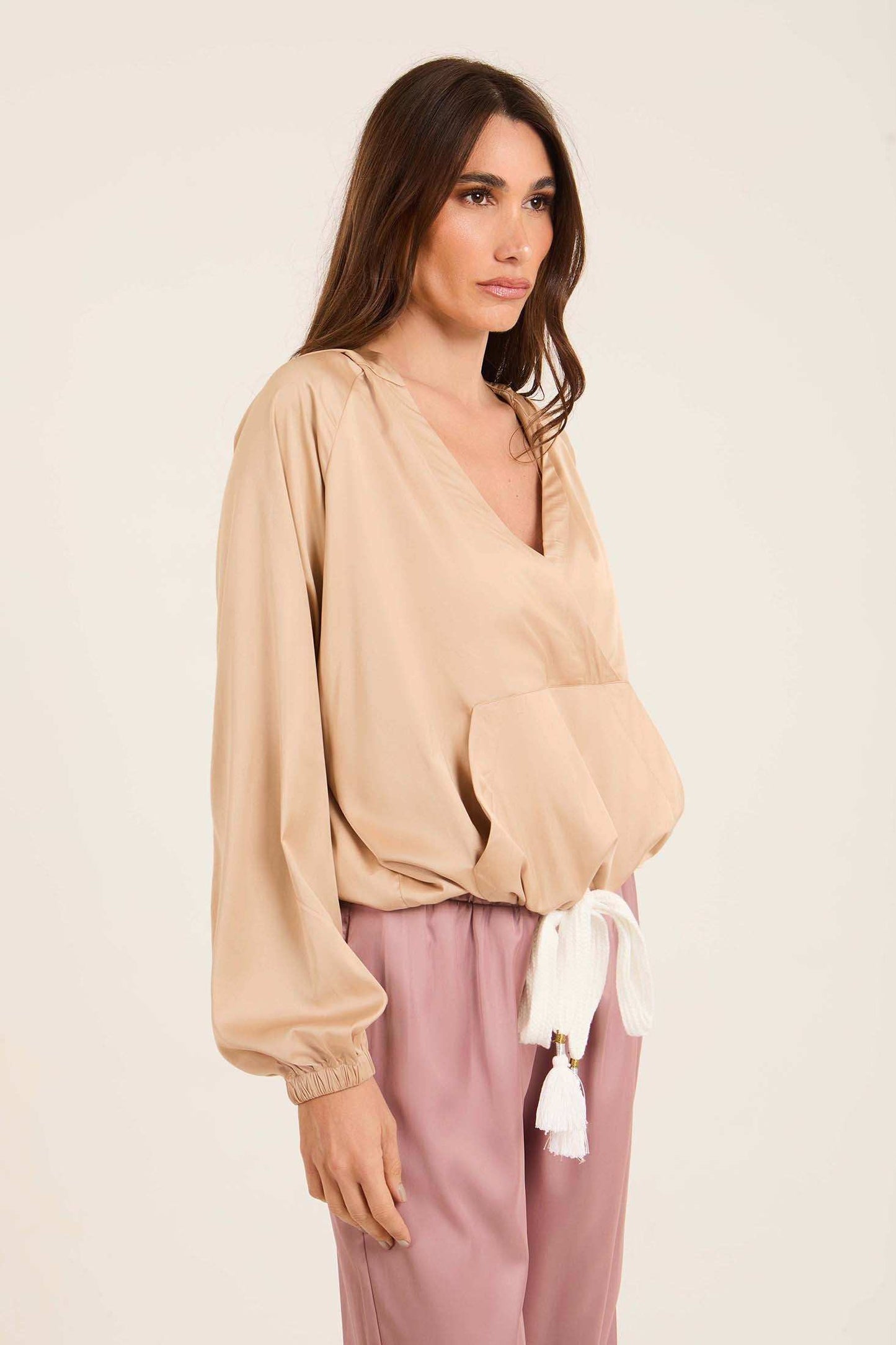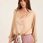 Deep V-Neck Sweatshirt with Drawstring Trim