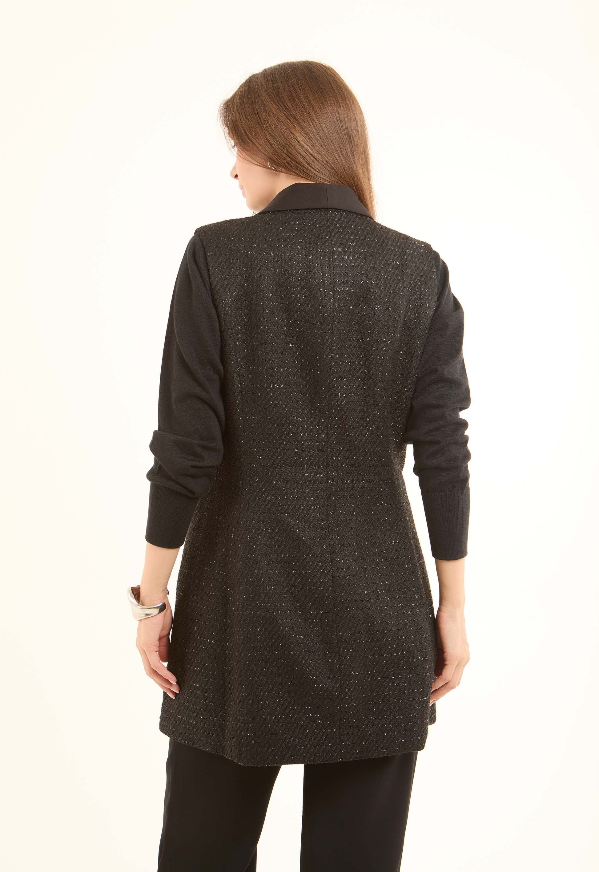 Classic Textured Long Vest with Single Button