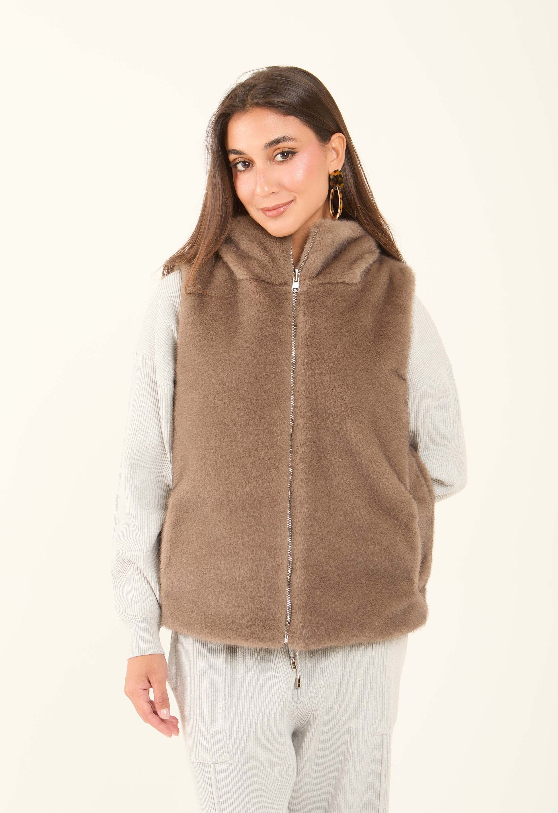 Reversible Solid Puffer Vest with Inner Fur
