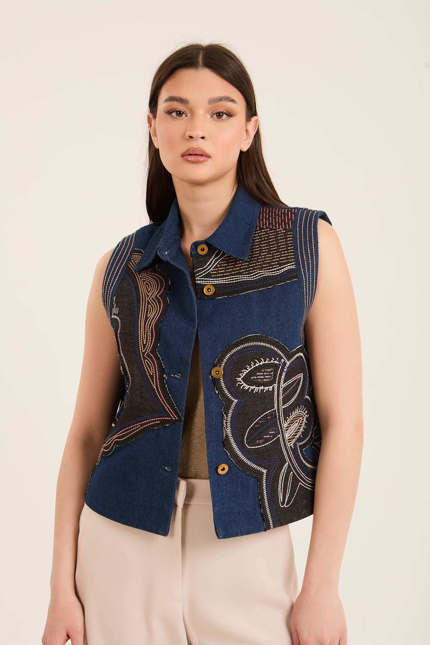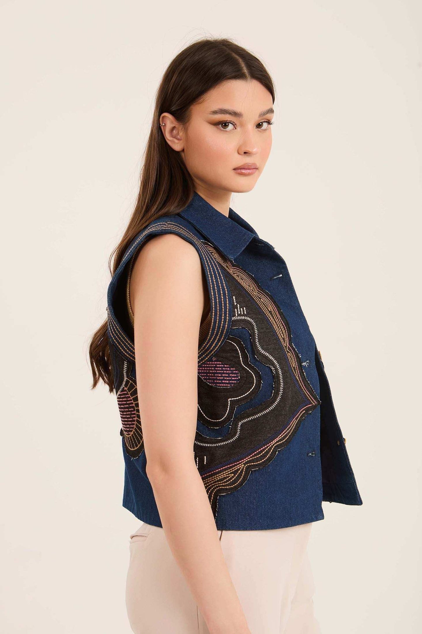 Stitched Patches Buttoned Vest with Turn Down Collar